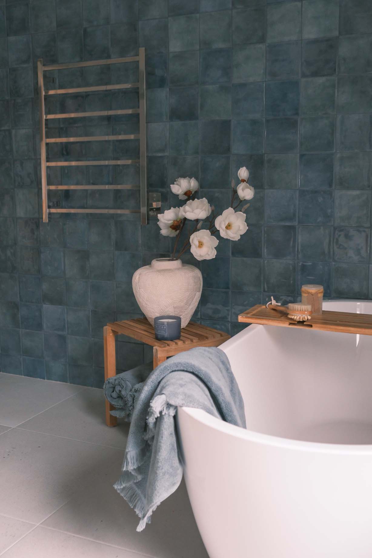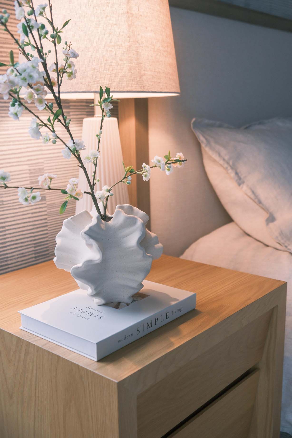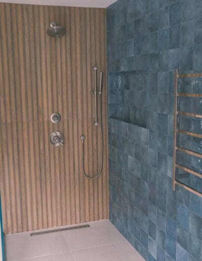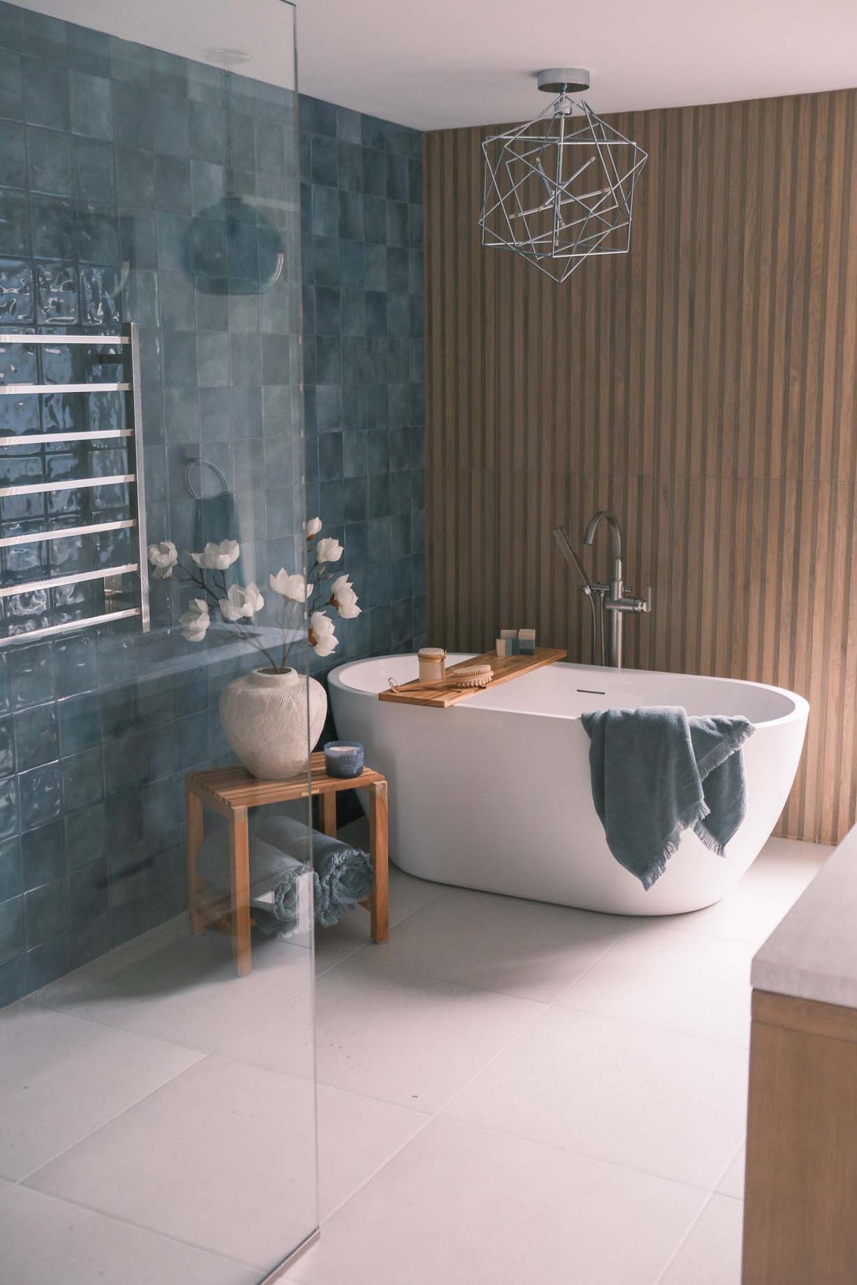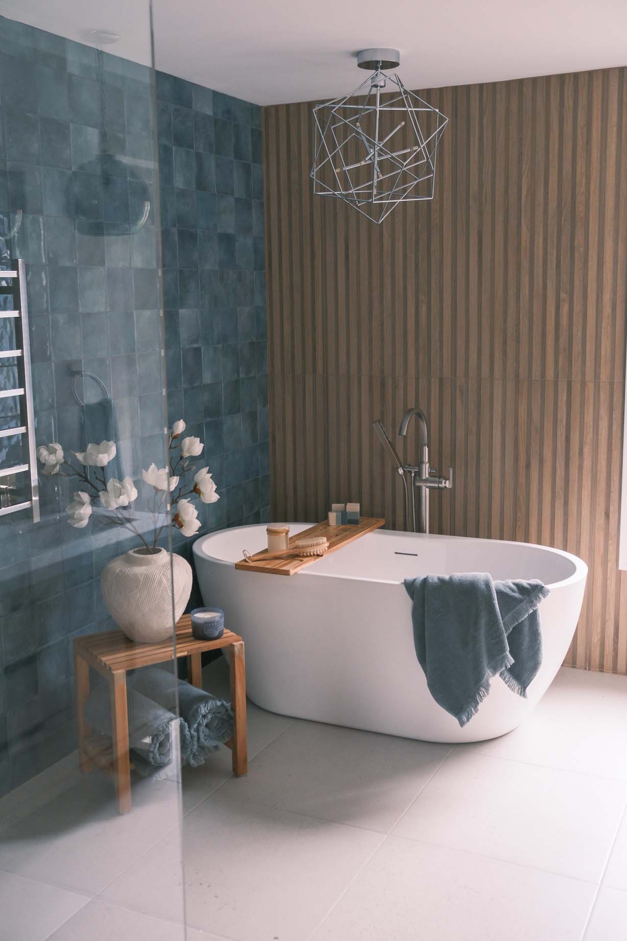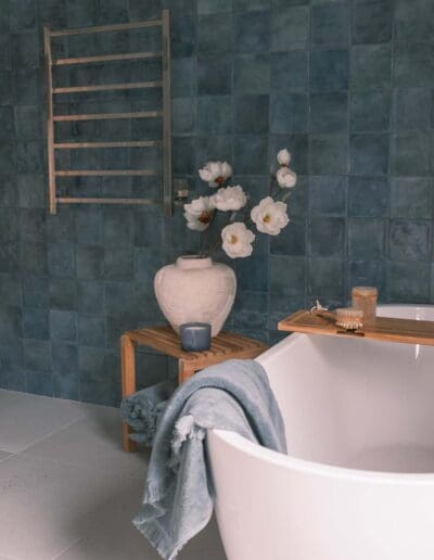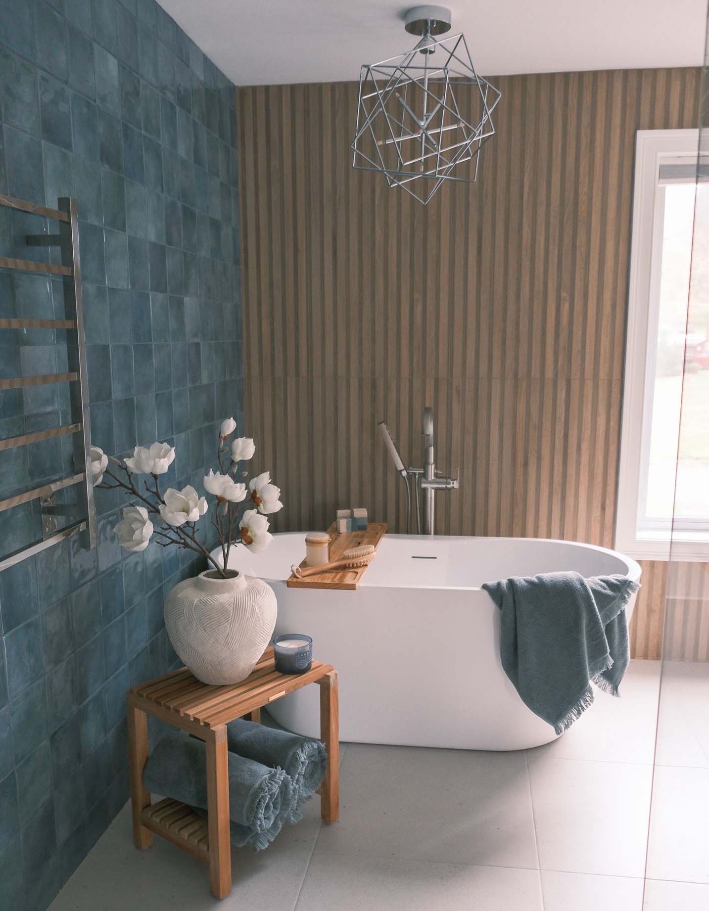 This Windham master suite was transformed into a calming retreat that blends comfort, warmth, and spa-inspired luxury. The bedroom now features soft neutrals, layered textures, and a statement accent wall that brings subtle dimension to the vaulted space. Just steps away, the master bathroom underwent a full refresh—swapping its dated finishes for modern tilework, a freestanding tub, and a bright, open shower. Together, the redesigned spaces create a serene sanctuary perfect for unwinding at the end of each day.