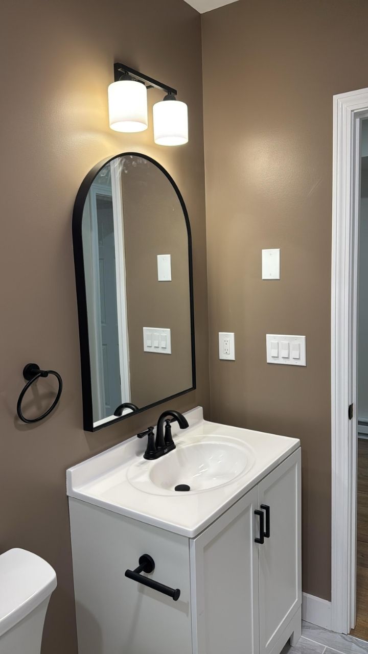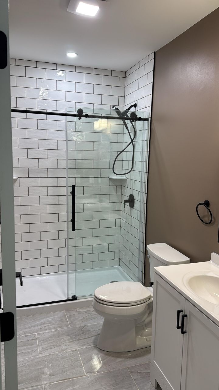 This Nashua basement remodel was designed to transform an underutilized space into the ultimate hangout. With an open layout, brand-new flooring and walls, a full bathroom, and a custom mini bar, the result is a bright, welcoming space perfect for entertaining and relaxing. We are putting the finishing touches on this now!