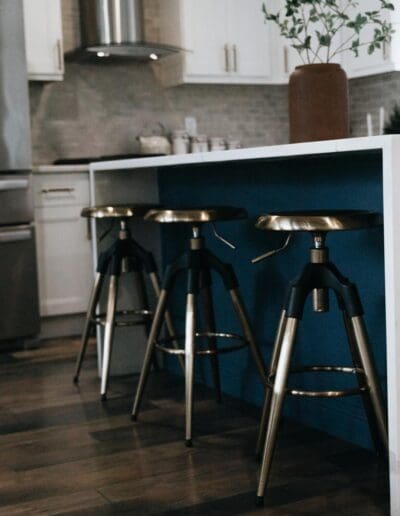 Design Tip: Don’t be afraid to experiment with a rich color palette — deep navy, forest green, or even charcoal can elevate your kitchen without overwhelming it.