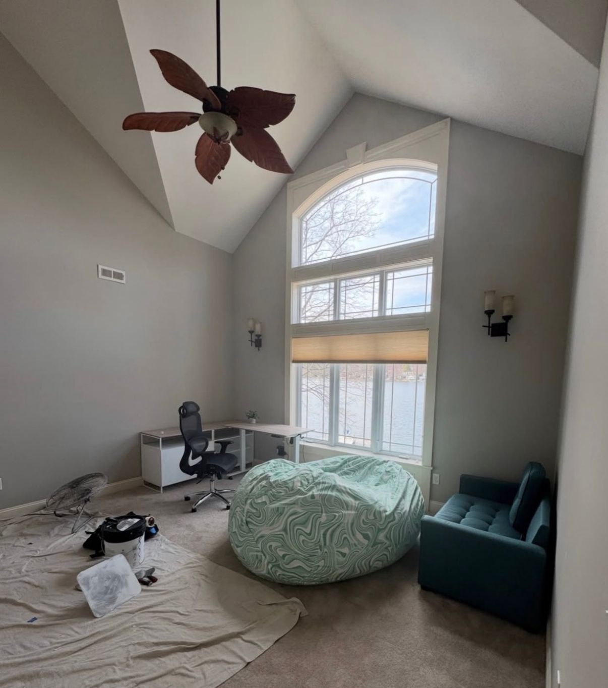 This kids’ bedroom remodel in Windham, NH proves that functional design can still be fun. Once dark and heavy, the room now feels bright and energetic thanks to a bold accent wall, colorful carpeting, and plush furnishings.